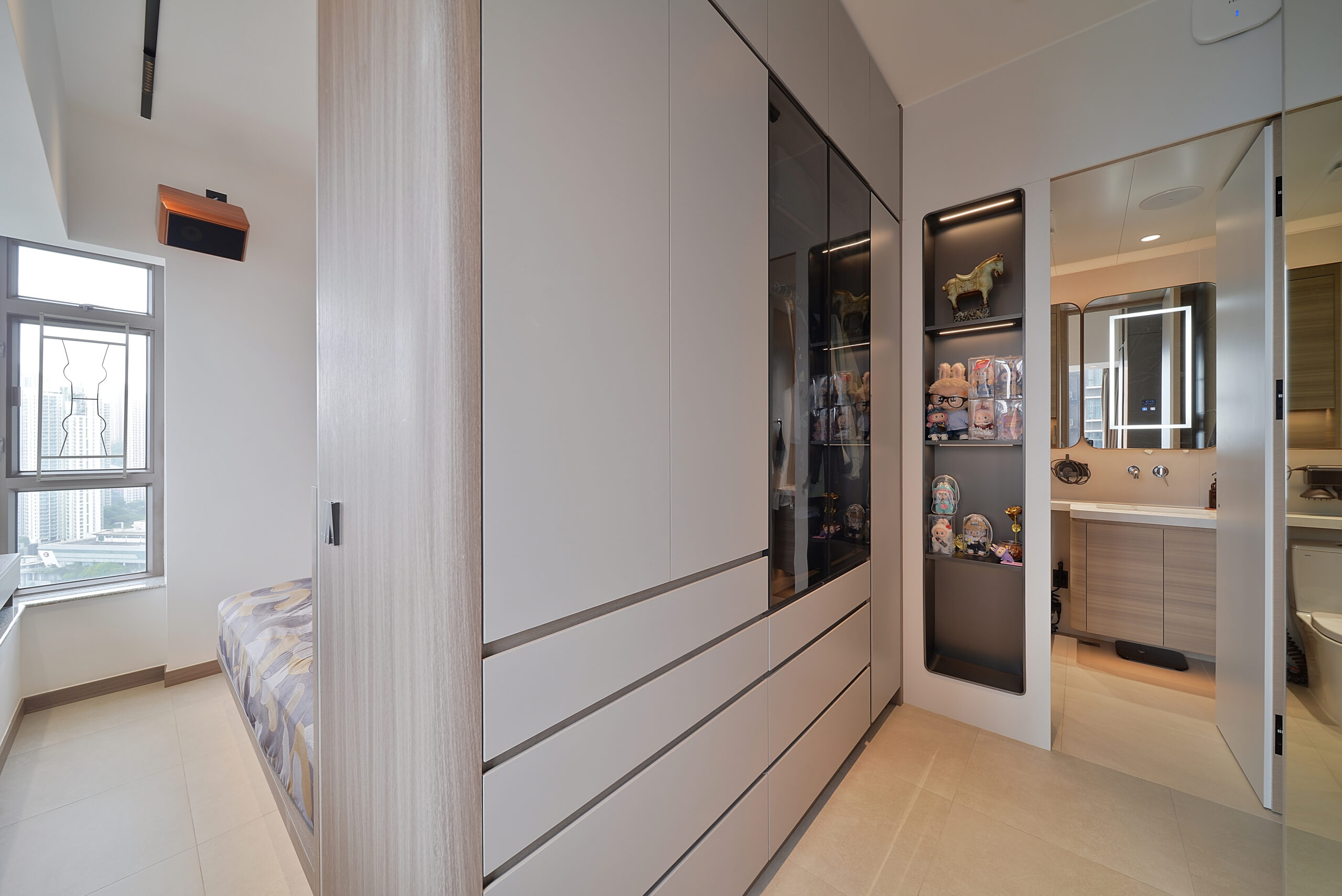 主人房由兩房間合併而成,配備流暢連接的衣帽間與套房浴室,採用先經衣帽間再進入睡房的動線設計。通過精細動線與低調細節的深思取捨,打造兼具實用性與高級感,功能與美學的絕對平衡。