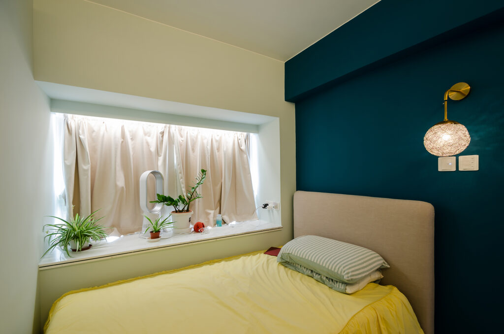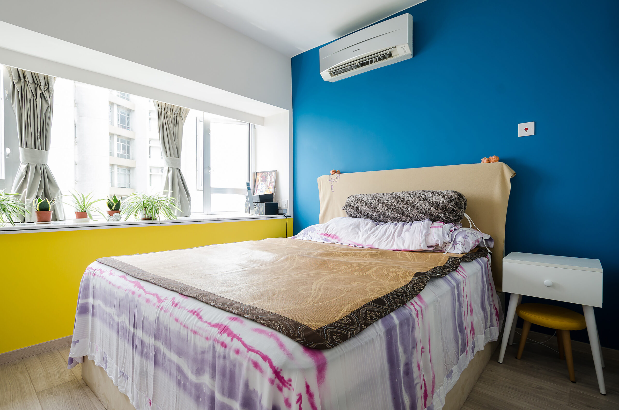 鮮明的黃色與沉穩的藍色交織出獨特的色彩組合,為睡房營造出鮮明而富有活力的格調。